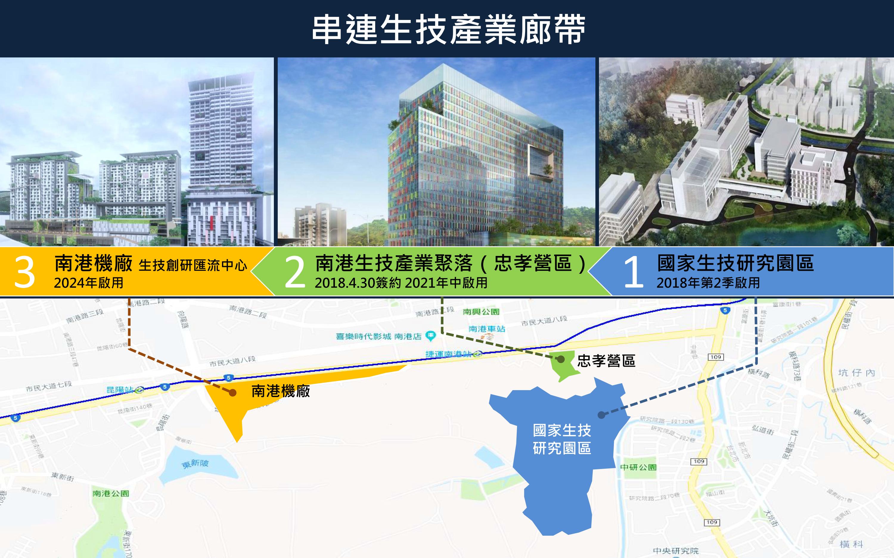 為配合行政院「5+2產業創新計畫」,接軌國家生醫產業政策,臺北市政府於2018年4月30日正式啟動「南港生技產業聚落開發計畫BOT案」,連結南側的中研院、國家生技研究園區,北側的內科、南軟科技園區,加上南港車站三鐵共構的交通樞紐,對接外縣市生技園區發展能量,形塑完整的國家生技產業廊帶。