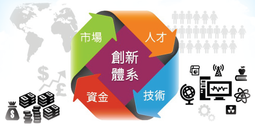連結創新體系的四大關鍵:技術、人才、資金、市場。