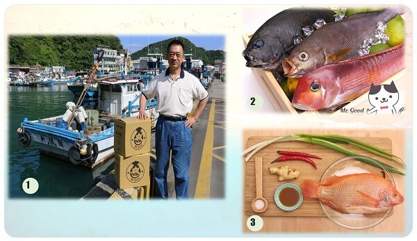 (圖1) 好好鮮生創辦人父親-30年水產經驗專家;(圖2) 好好鮮生-海魚箱; (圖3) 好好鮮生-尼羅魚料理 / 資料來源:好好鮮生Mr. Good提供