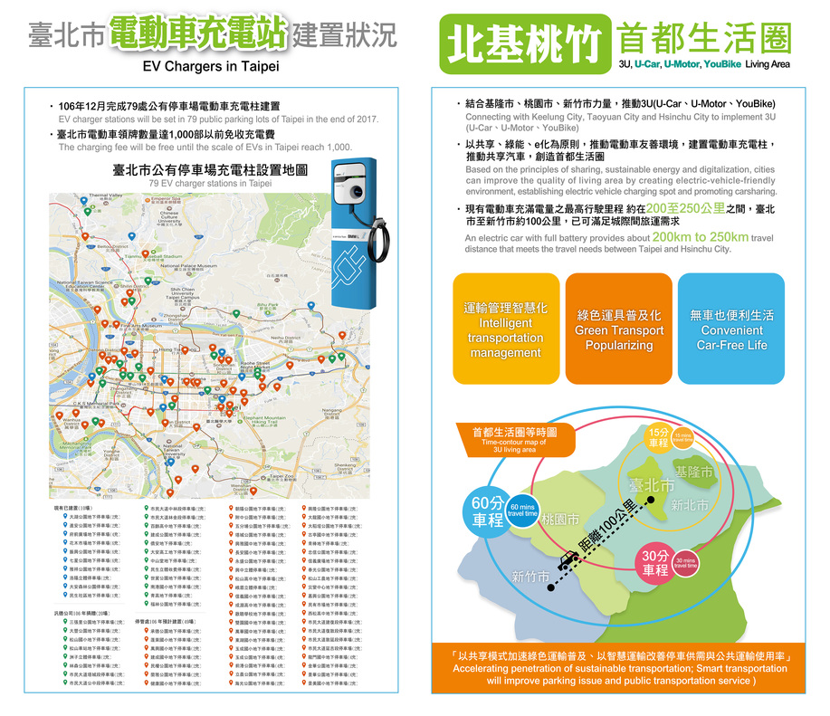臺北市政府資訊局及臺北智慧城市專案辦公室協助媒合威摩、裕隆、蓋亞、和運與電馳等業者,共同推動3U計劃,並於106年2月透過智慧城市展的舉辦,結合基隆市、桃園市、新竹市及民間業者的力量,打造3U智慧綠能的首都生活圈。